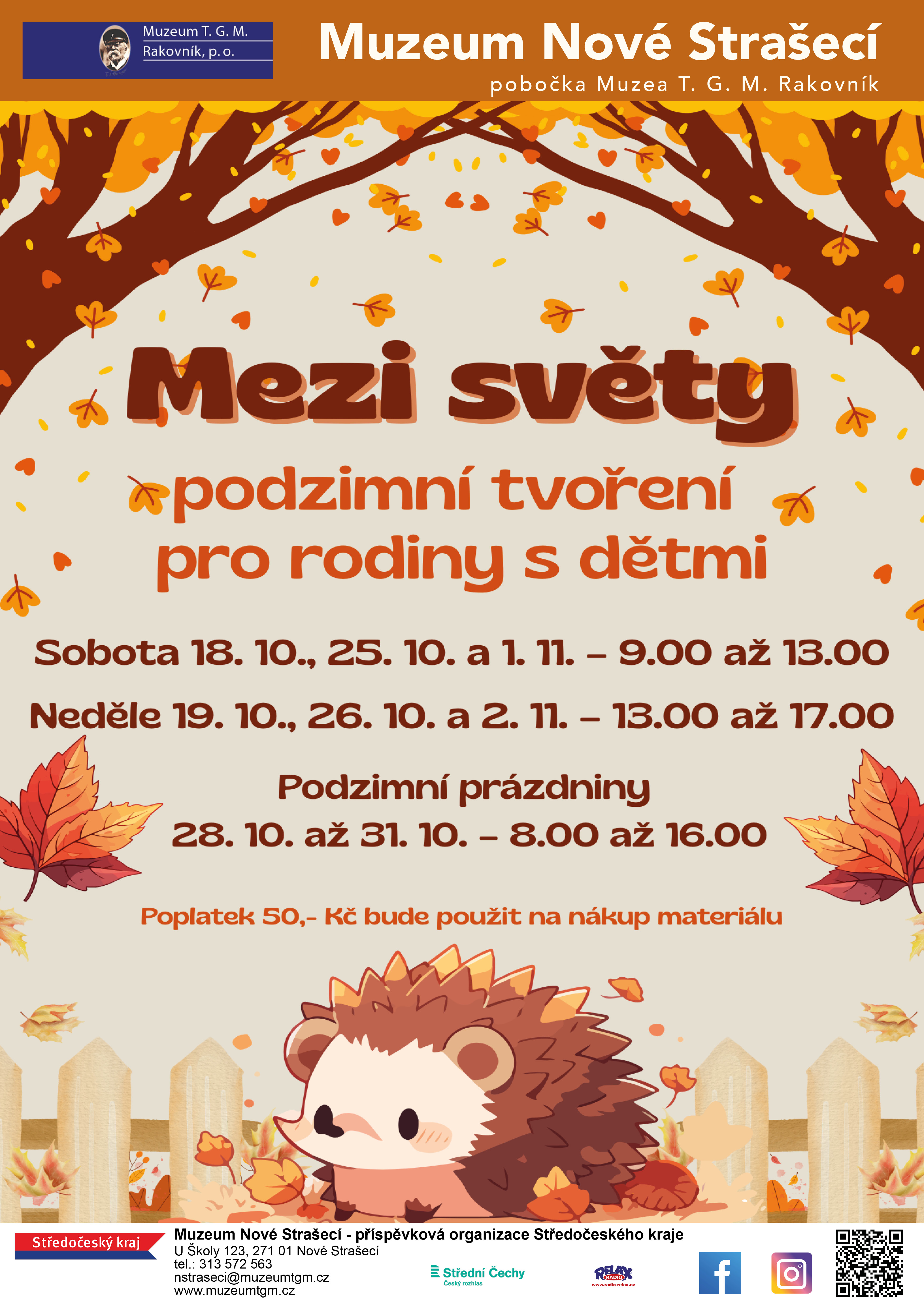 Přijďte k nám do muzea na oblíbené podzimní tvoření s názvem Mezi světy, které bude probíhat o víkendech a podzimních prázdninách od 18. října do 2. listopadu 2025. V sobotu jsme tu pro vás od 9 do 13 hodin, v neděli od 13 do 17 hodin a o podzimních prázdninách (28.10. – 31.10.) od 8 do 16 hodin.
